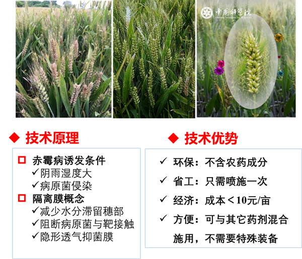 针对全球气候变化、耕作制度不适宜等引起的农作物病害(如小麦赤霉病和小麦白粉病等)和自然灾害(如小麦穗发芽)等灾害侵袭,针对农作物提质增效、节本减排的粮食安全和环境友好的需求,以小麦为例,研发了可高效防控小麦赤霉病、白粉病和穗发芽等绿色防控技术。在天然纳米材料的改性修饰、多组份农药减量复配等方面进行了技术突破;有效解决了化学农药多施成本高面源污染严重的问题,成功实现了减肥减药、提质增效的要求,相关研究成果已发表研究论文,同时申请国家专利保护。本项目的开发研究工作,将满足长江中下游冬麦区、黄淮麦区常年发生的小麦赤霉病、白粉病和穗发芽的高效、绿色、低成本的减灾防控,满足国家粮食安全和环境安全的粮食需求。